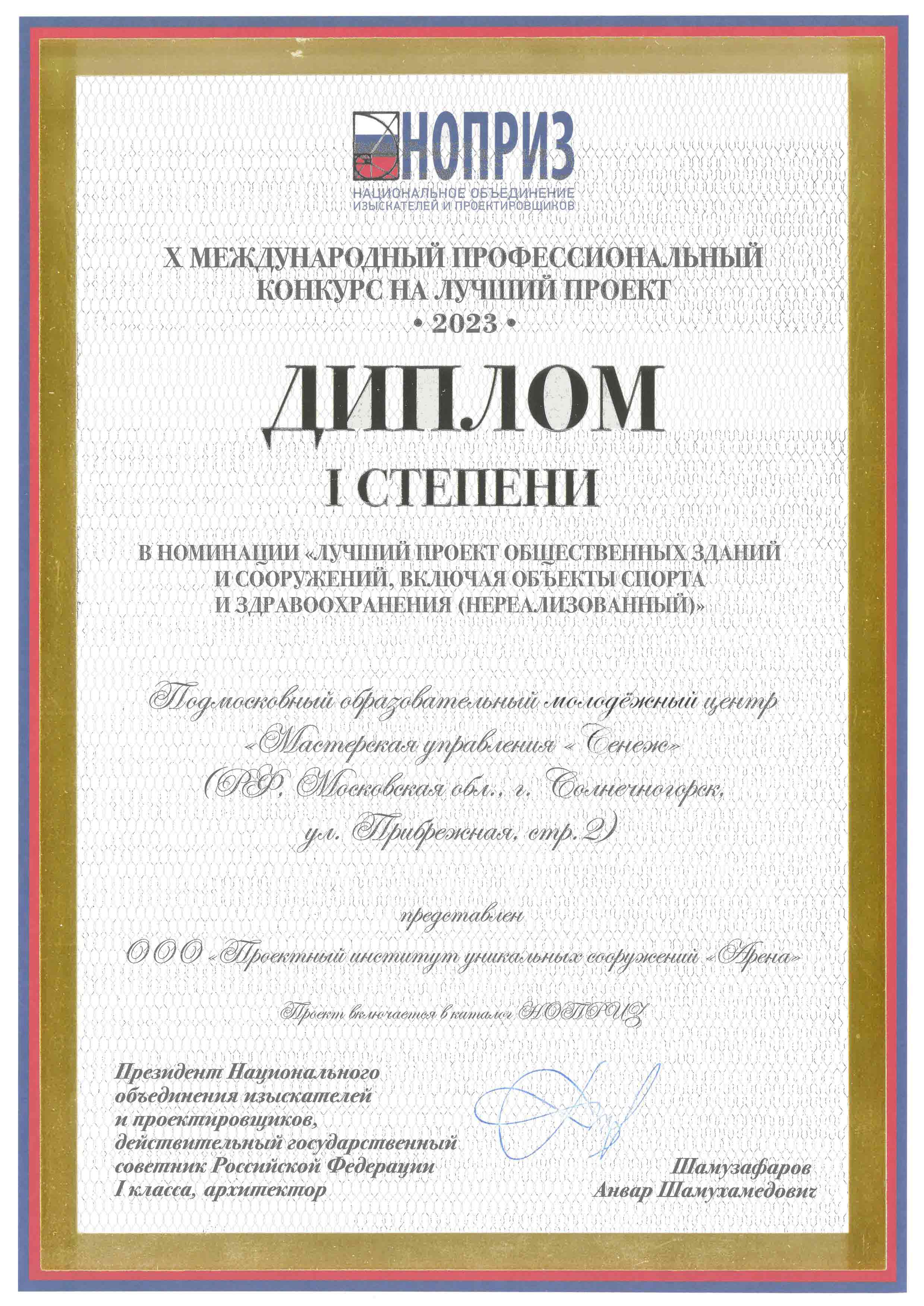 СЕНЕЖ получил диплом 1 степени Х международного конкурса НОПРИЗ
