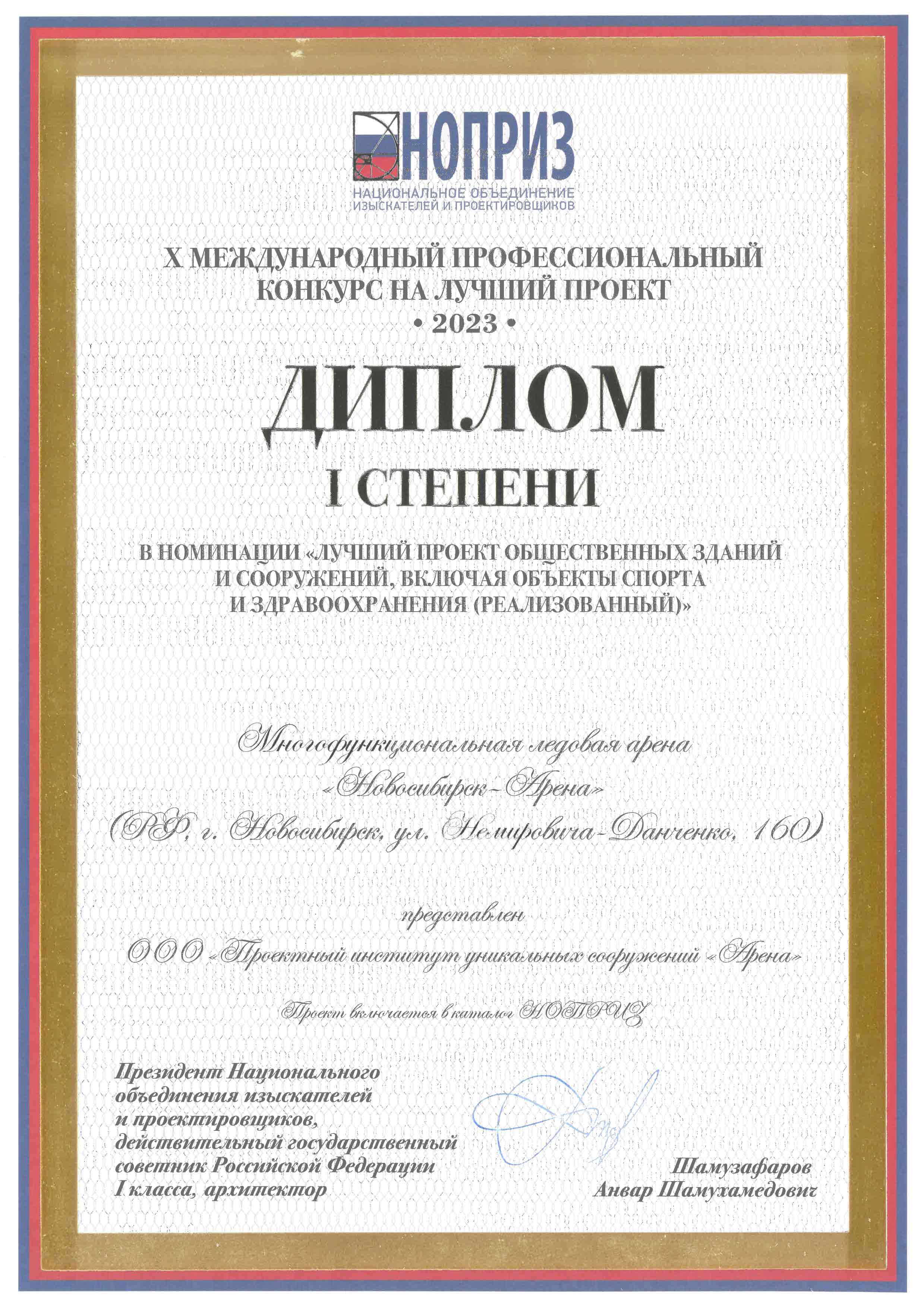 Ледовый дворец СИБИРЬ-АРЕНА получил диплом Х международного конкурса НОПРИЗ