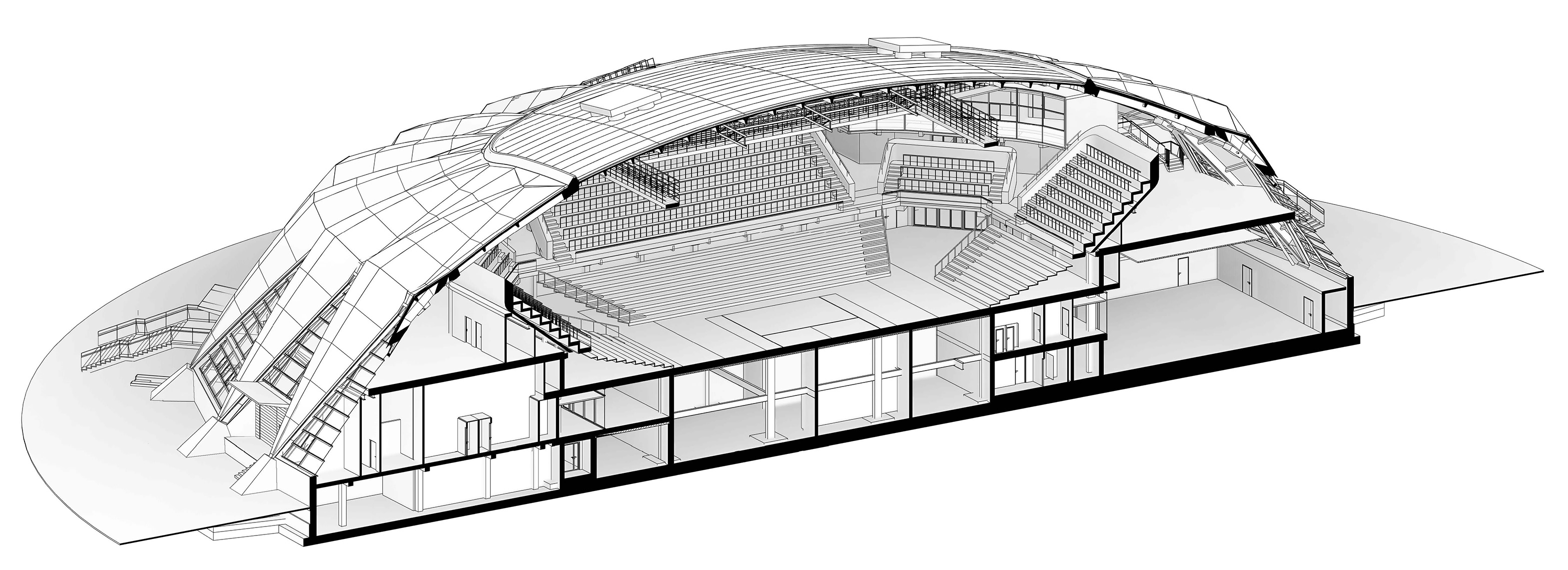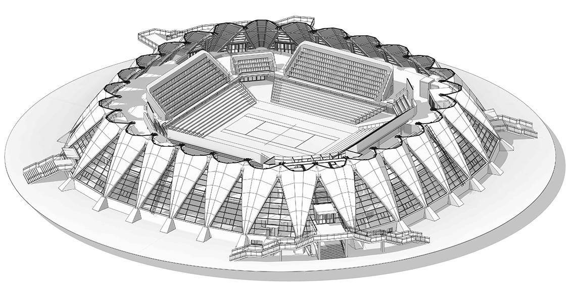 Проект капитального ремонта предполагает при сохранении общей площади, планировочной структуры и основных несущих конструкций здания, адаптацию Универсального спортивного зала к современным нормам и требованиям по комфорту и безопасности, расширение его возможностей по составу проводимых мероприятий, замену витражных и фасадных конструкций.