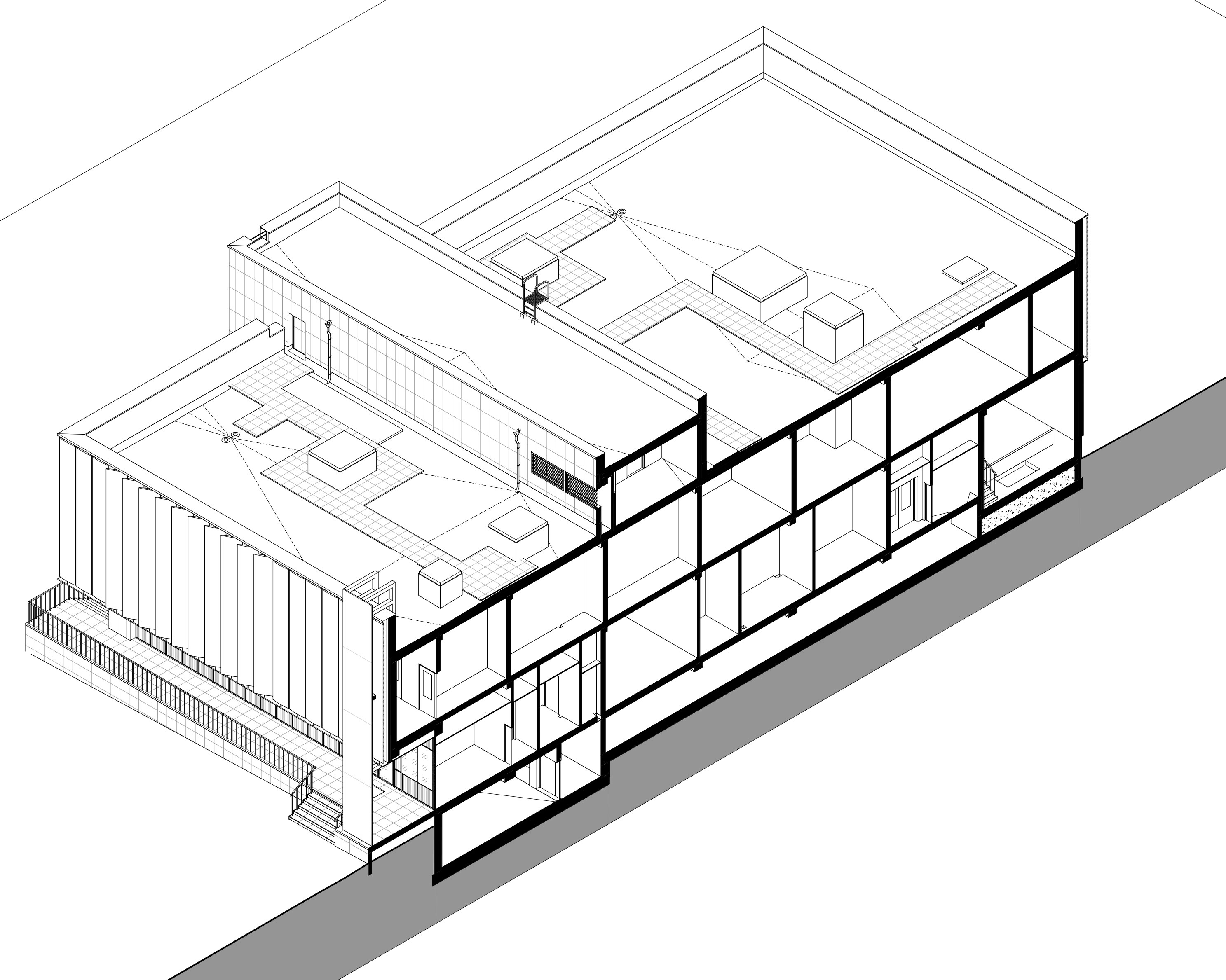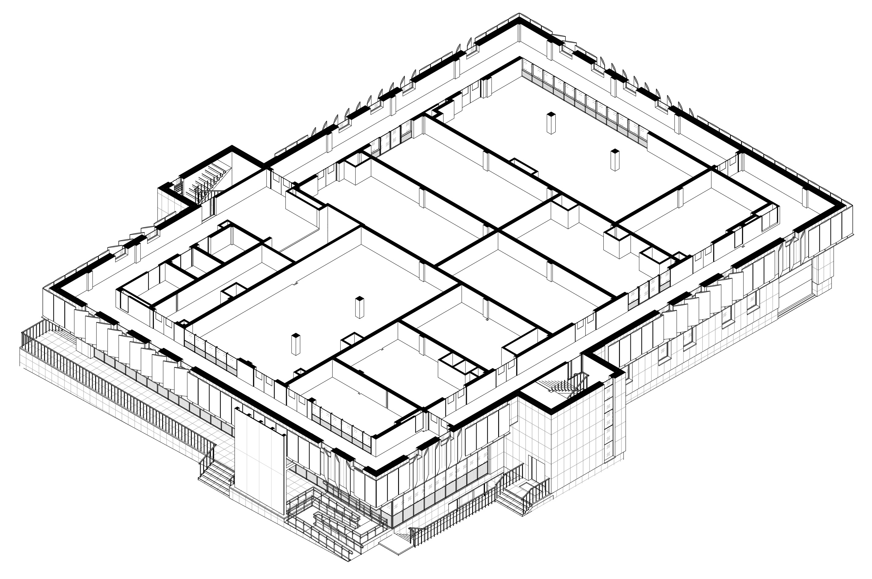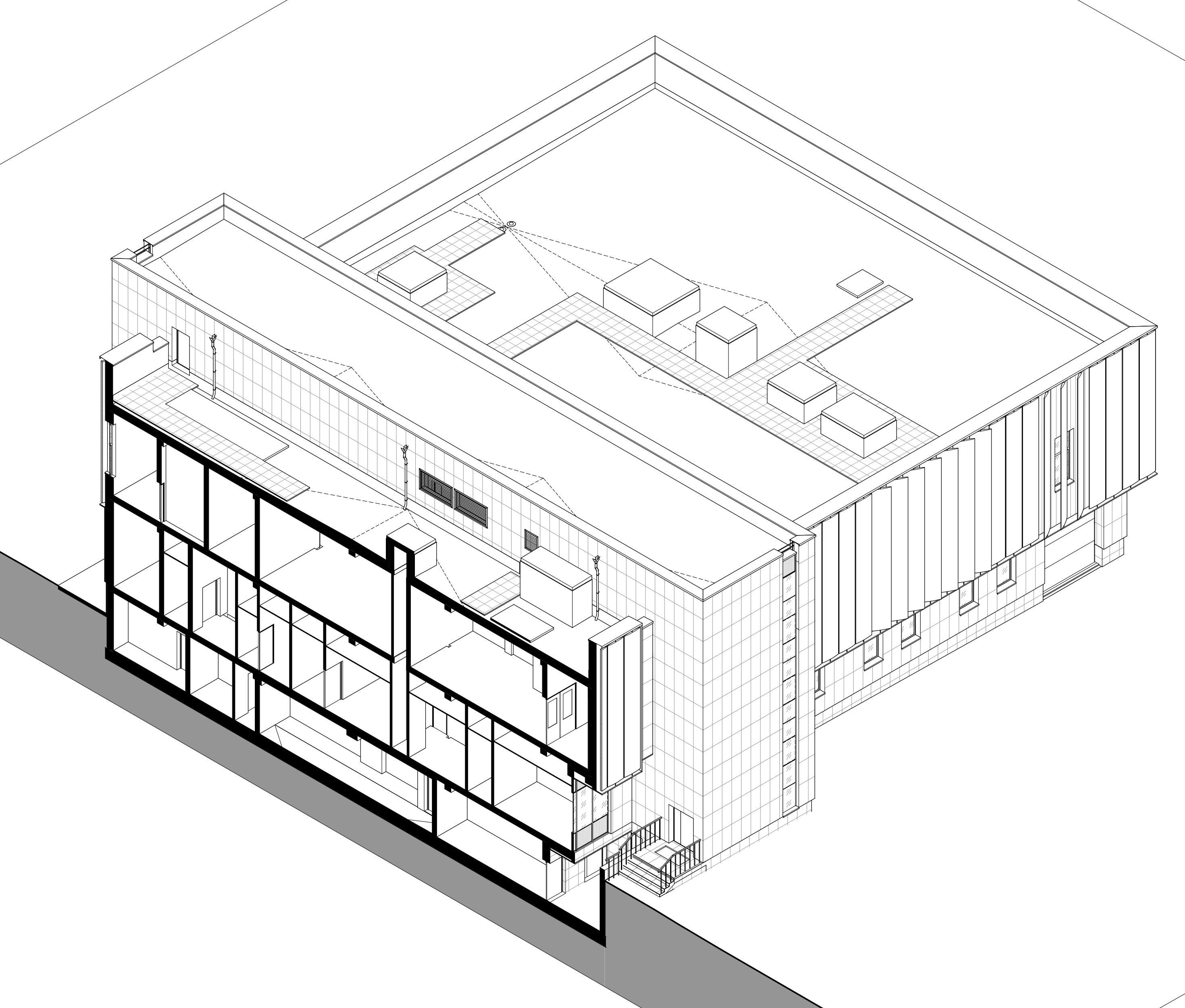 Здание простой прямоугольной формы предназначается под размещение фондов Кемеровского областного музея изобразительных искусств.